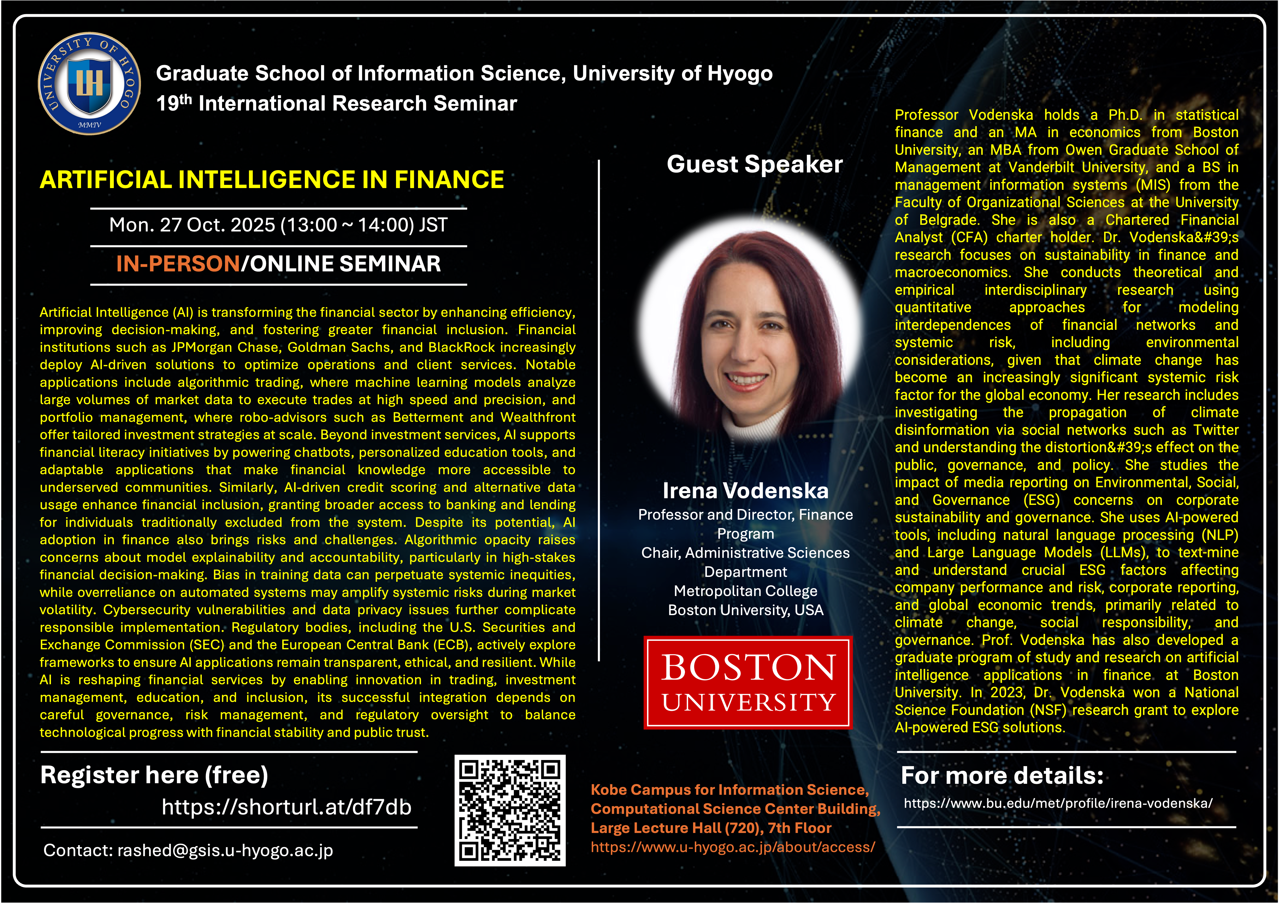 ゲ ストスピーカー:Irena Vodenska(Boston University, USA)